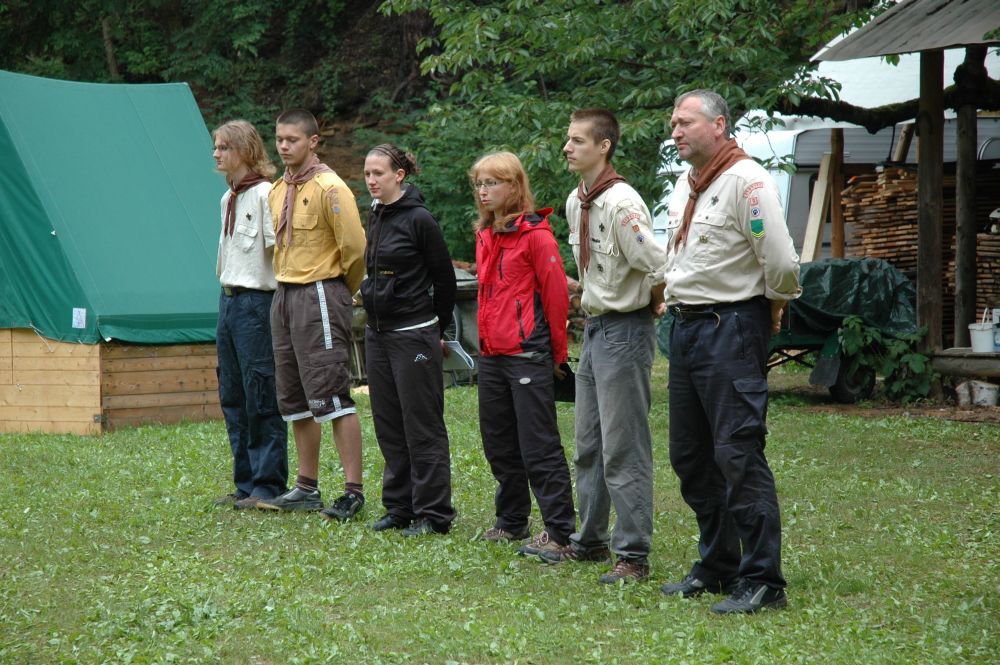 ... družiny pod skálou u táborového kruhu ...