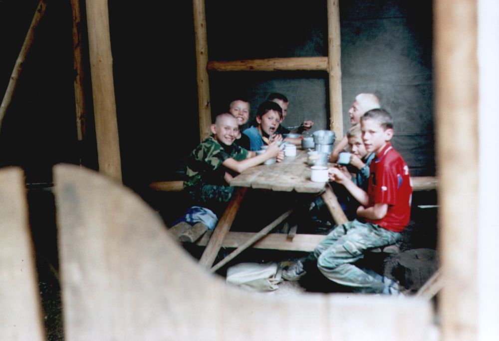 ... stavba táborové jídelny ...