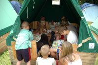 ... výstavba stanů začala ...