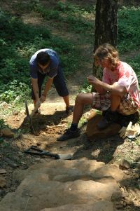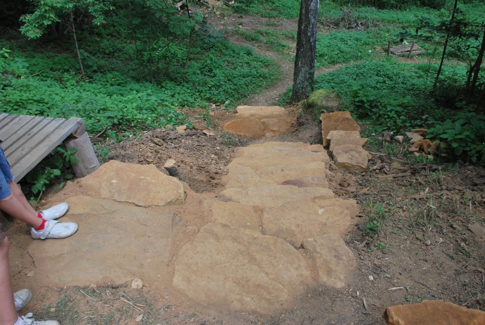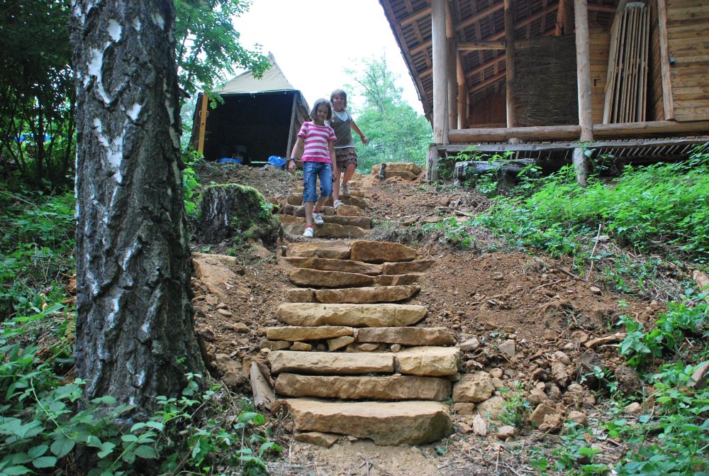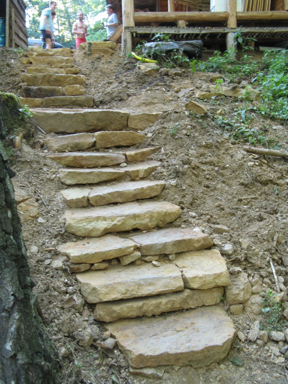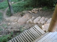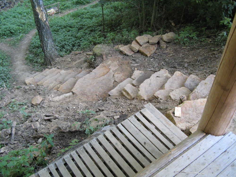 ... otevření kamenolomu umožnilo výstavbu neuvěřitelných schodů k latrínám. Konečně se neviklají ...
