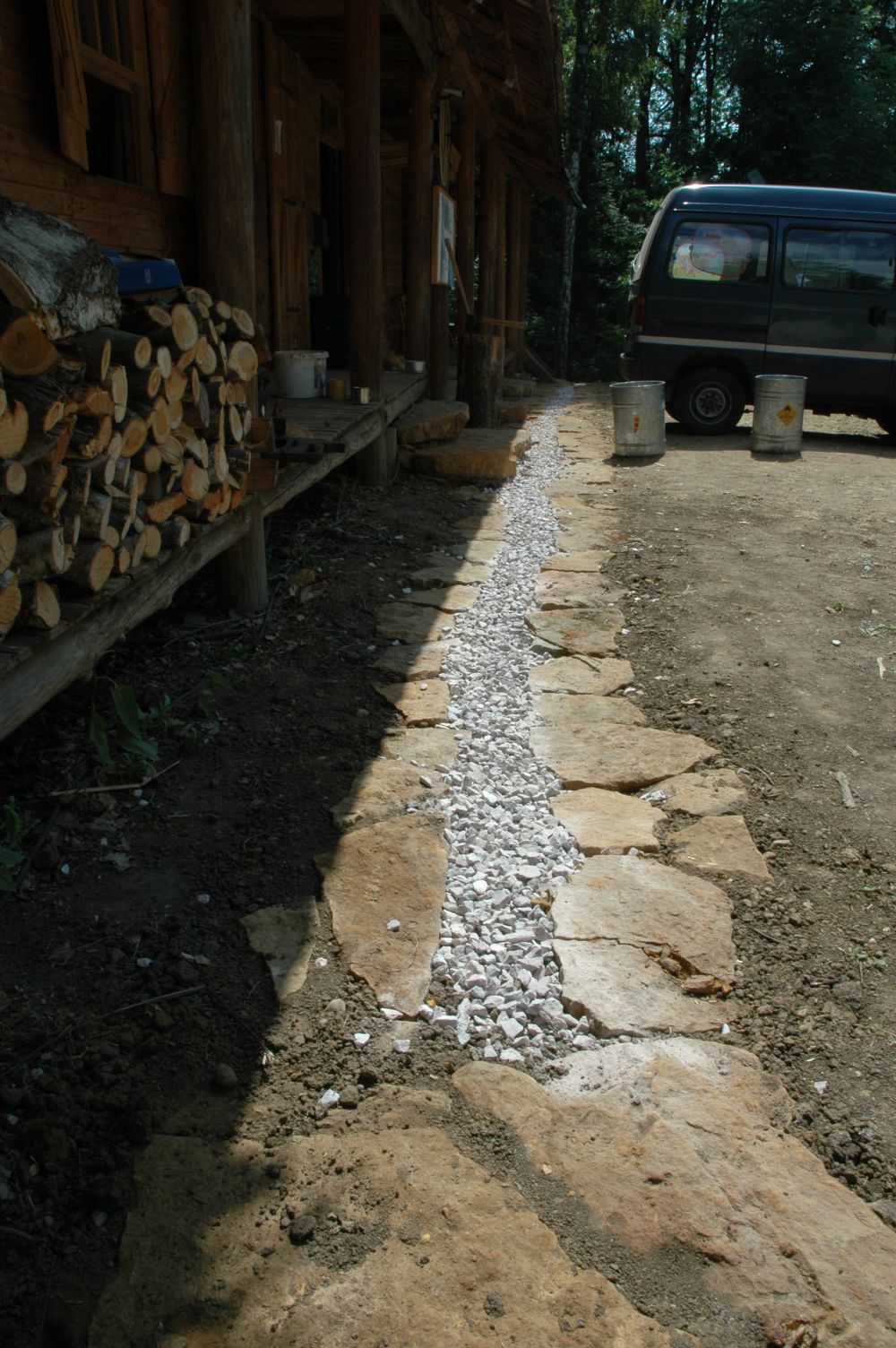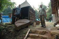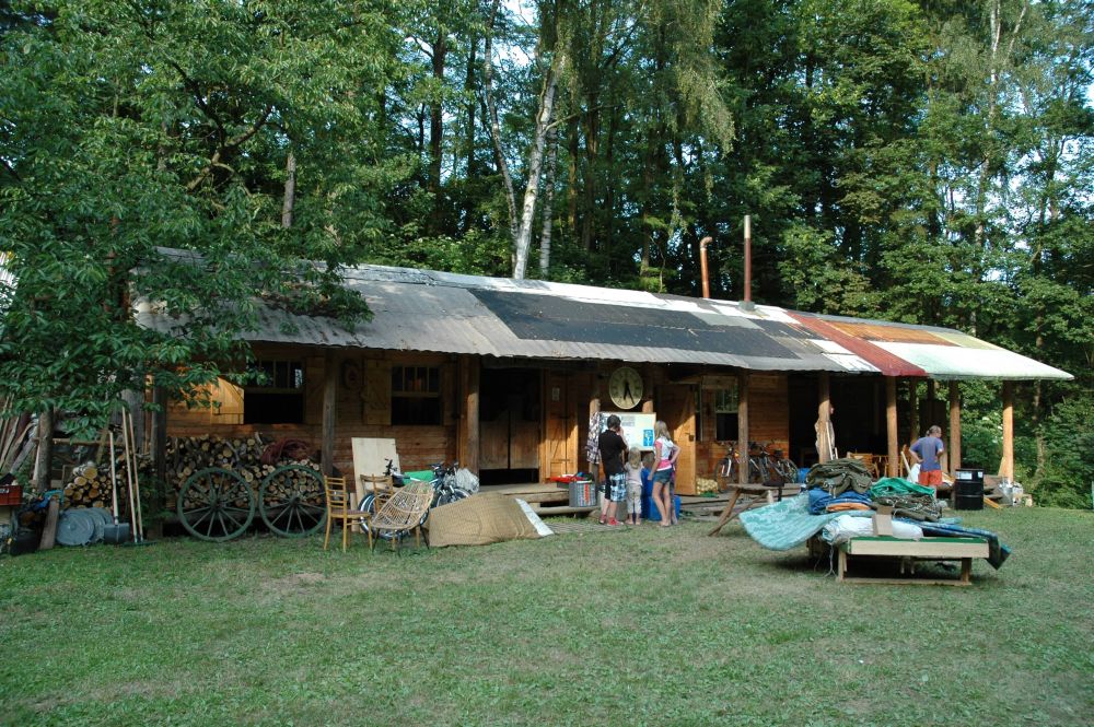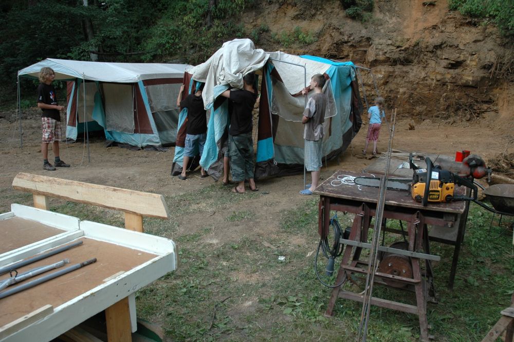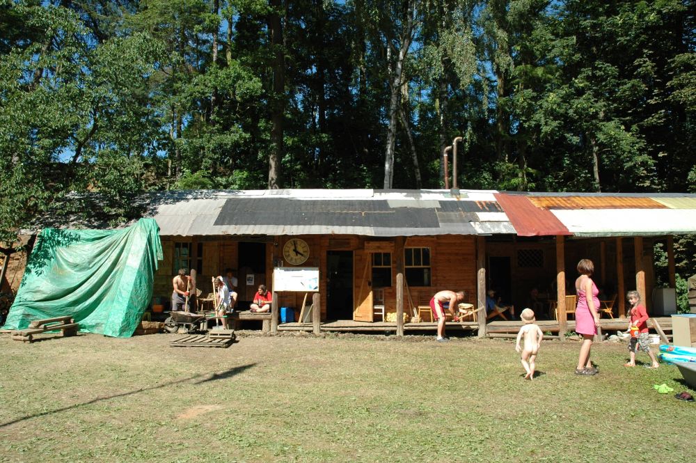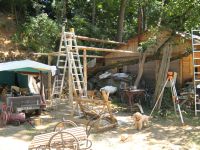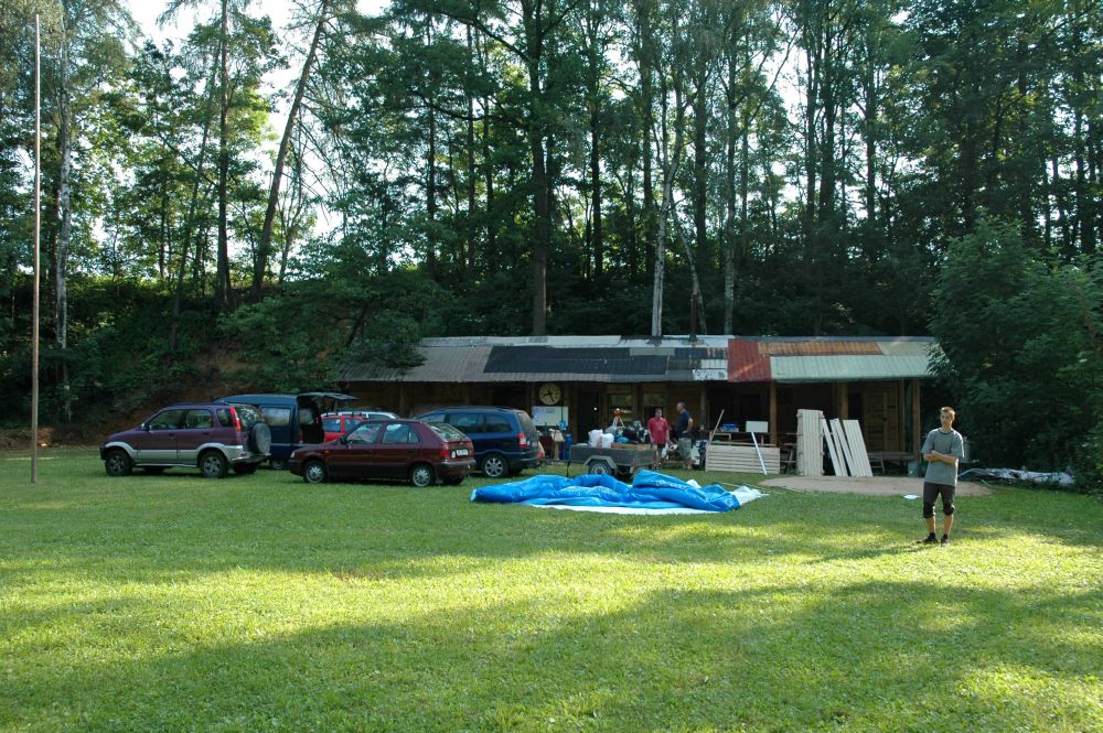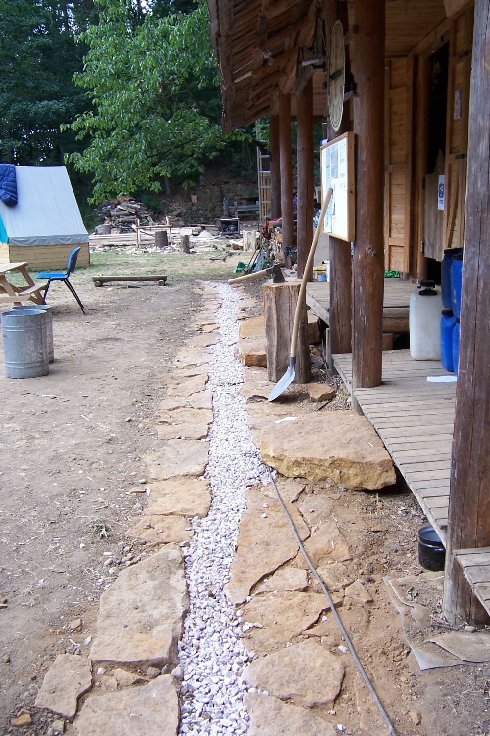 ... spousta věcí před jídelnou a stan na nářadí - ten bude - povede-li se ...