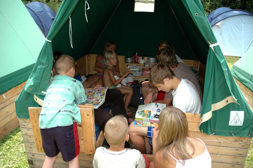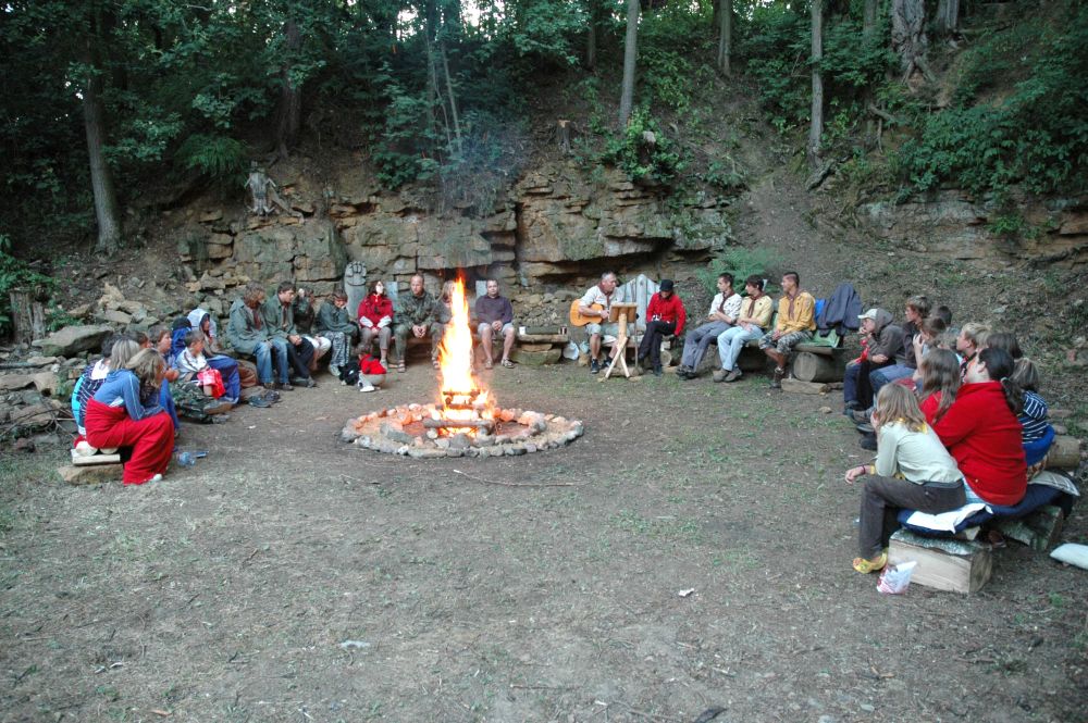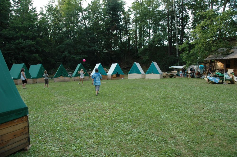 ... ranní prohlídka, táborový oheň a jídelna s kuchyní ...