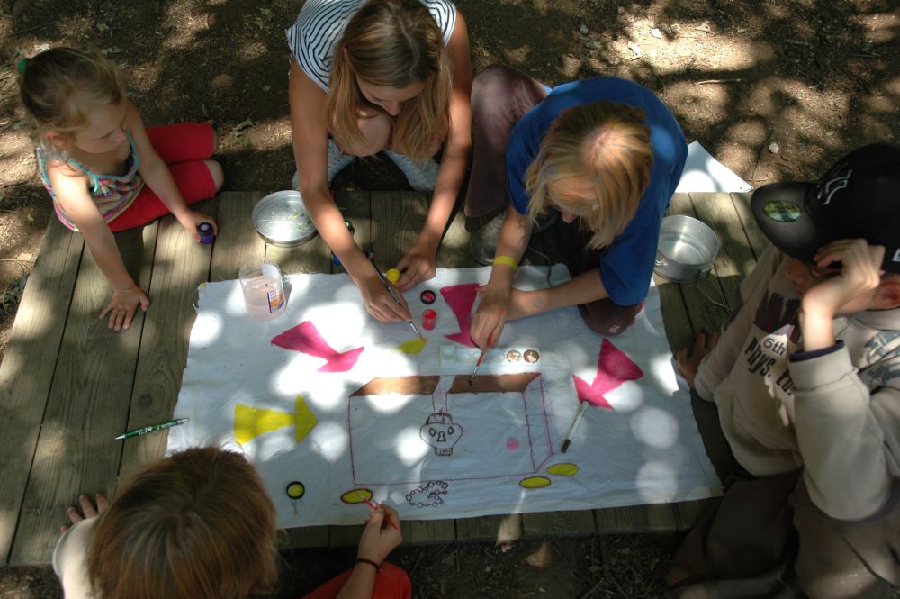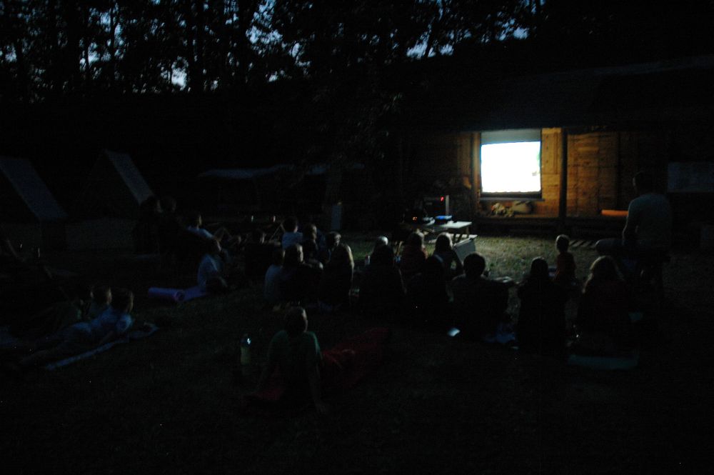 ... etapa táborové hry a večerní promítání - letní kino v lese ...