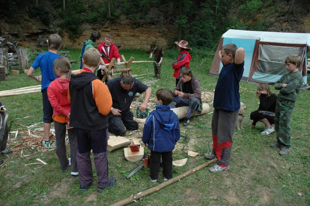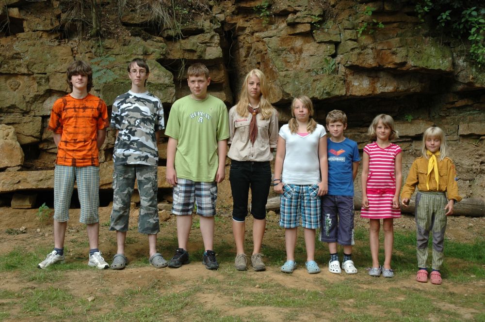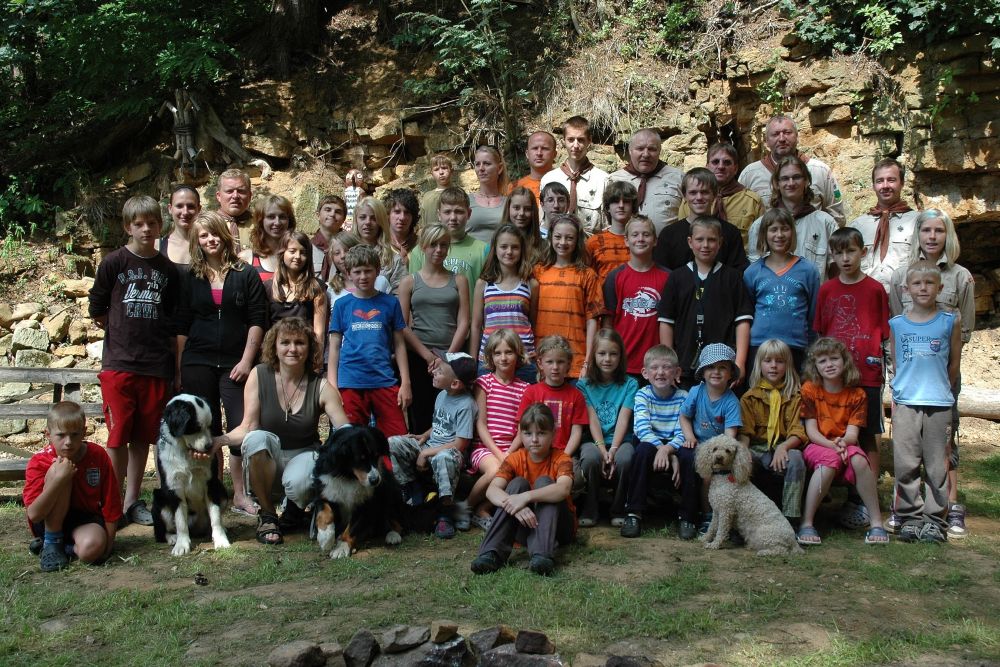 ... družiny pod skálou u táborového kruhu ...