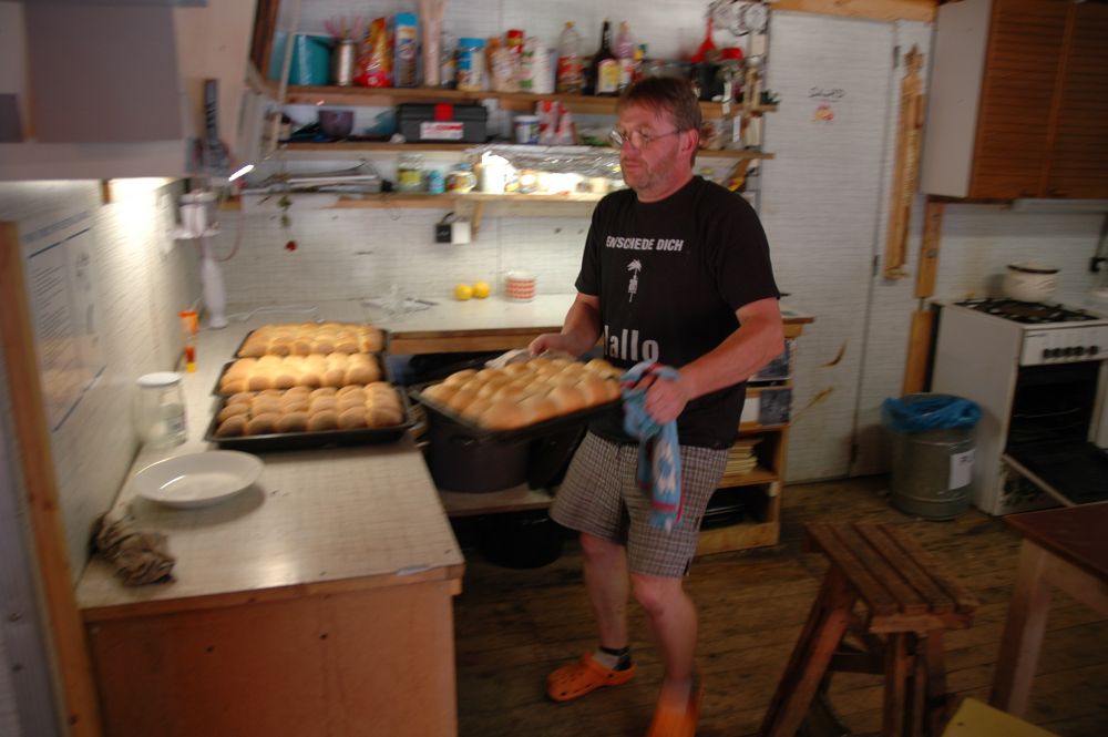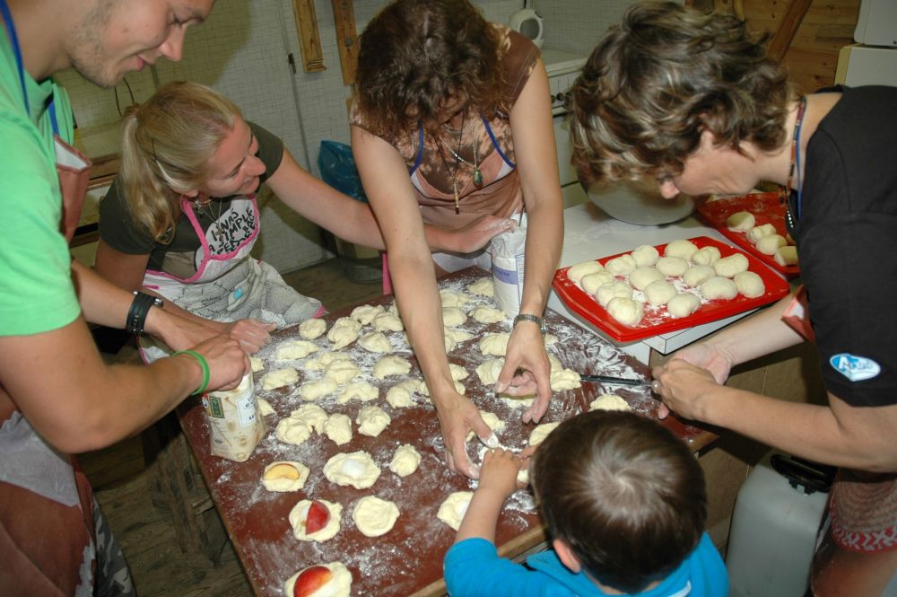 ... a kuchyň je v plném provozu - kynuté ovocné knedlíky a buchty (jako od Pepánka) ...