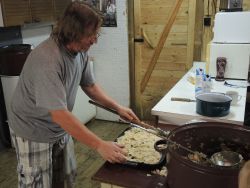... podlaha ve dřevníku - "práce v kamenolomu" ...