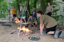 ... po obědě vaříme "lesní čaj" ze všeho, co v lese roste ...