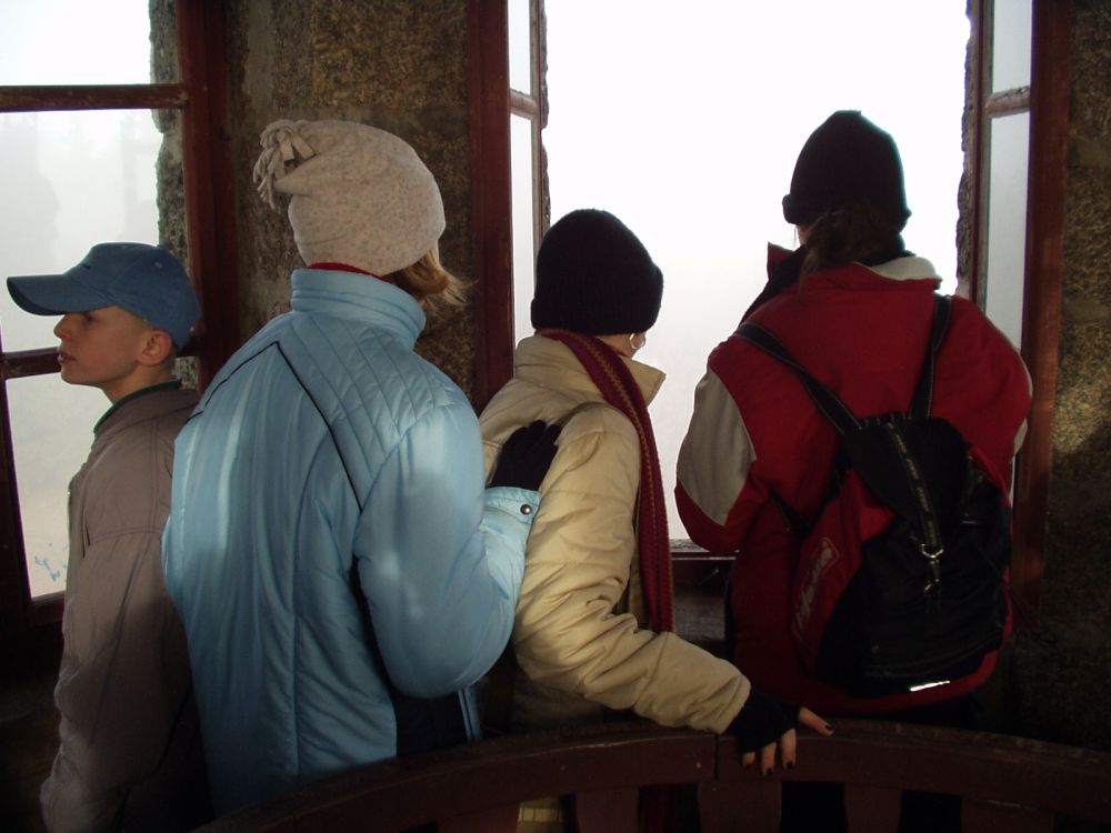 ... před rozhlednou na Bramberku ... ... ... ... vnitřek rozhledny ... ... ... ... rozhledy do mlhy ... ... ... ... rozjasnilo se ...