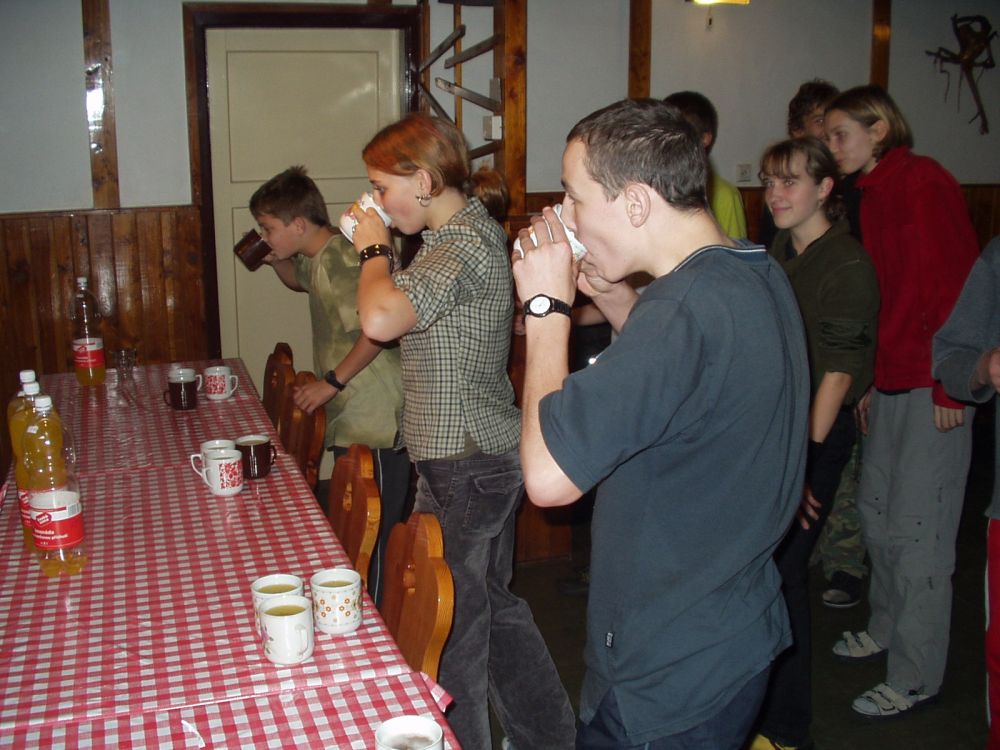 ... ze hry - štafetové pití vody...