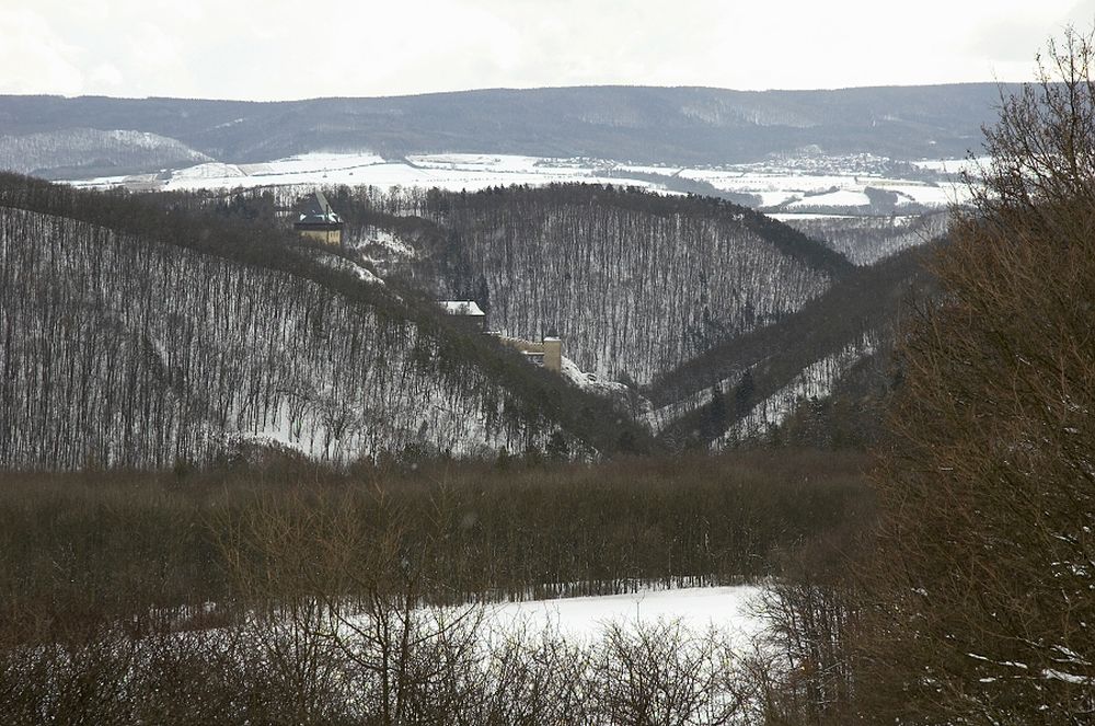 ...Karlštejn v dáli a z podhradí...