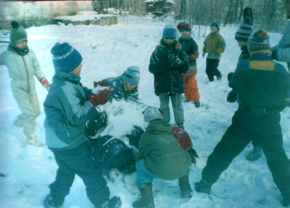 ... hry ve sněhu - ohřev u sudu a koulovaná ...