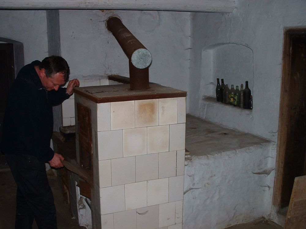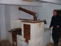 ... původní kachlová kamna v opuštěné chalupě u cesty ...
