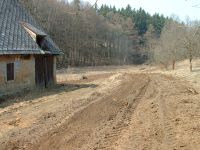 ... podél cesty jsou zarostlé hromady hlíny vzniklých předchozími úpravami sjízdnosti ...