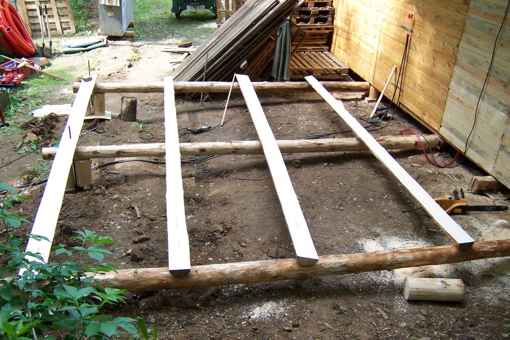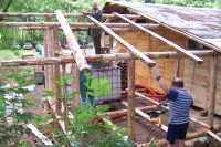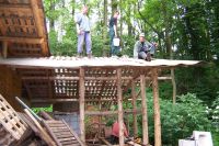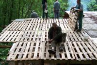 ... přiřízneme palety na střechu a přibijeme je tam. Na palety dáme krytinu a bude to ...