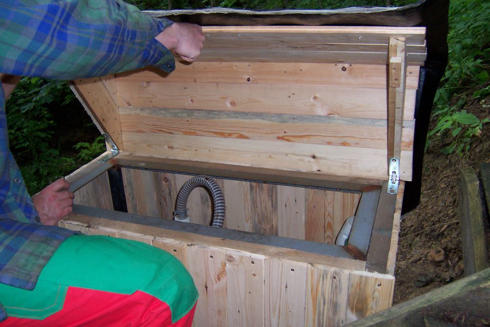 ... umývárna vznikla z nádrže a trubky Je to úžasné, když v lese teče teplá voda ...