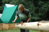... a tesaři pokládají první trámy do podlahy ...