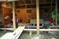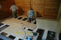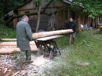 ... pro konstrukci roštu podlahy jsme si napůlili opořízované smrky ...