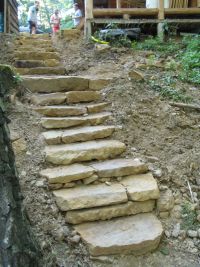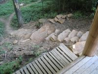 ... ono se řekne schody, ale jak tam ten placák dostat a zůstat všichni živí ...