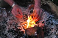 ... nejprve slavnostní rozdělání ohýnku křesadlem ...