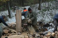 ... řezání, stípání, nakládání - dopoledne v dešti ...
