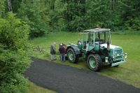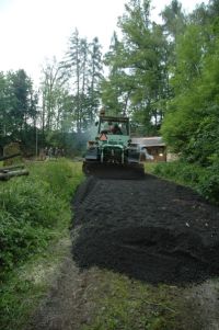 ...první akce - stavba "dálnice" (aby se to nebořilo - když tak hezky prší...) ...