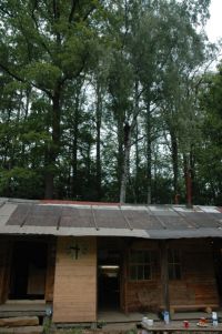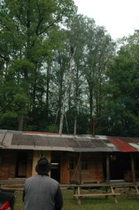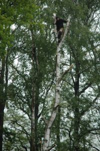... tam nahoře, kdesi v tom větvoví lezou machři a dělají ten strom menší a menší (tu břízu) ...
