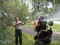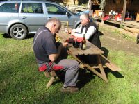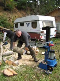 ... hlavní úkol brigády - rozřezání a rozštípání dříví ...