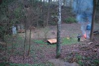 ... naši odborníci v akci - KyšKyš rozsvěcí kadibudky a Adam sází smrčky ...
