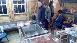 ... A protože nepřestávalo pršet, pustili jsme se odpoledne do rekonstrukce nerezového dřezu do umývárny "černého" nádobí ...