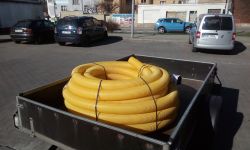 ... meliorační trubky jsme nastrkali do chrániček, aby nám to auta nerozplácla ...