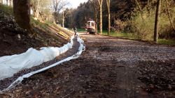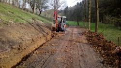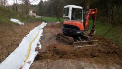 ... bagrem vyďoubaná rýha byla hotová na to šup, i když v části bylo dost lomového kamení. Přeci jen tam ta cesta byla již dávno před námi ...