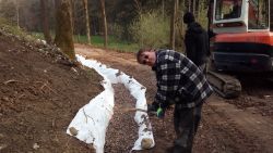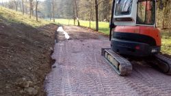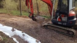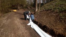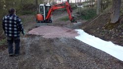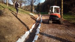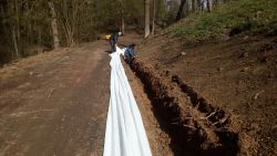 ... pomalu kačírek zmizel ve výkopu, překryl se dalším kusem geotextilie a ...
