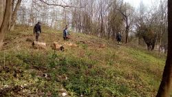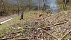 ... v zoufalství nejvyšším jsme se pustili do roští v sadu. kopec mezi cestou a parkovištěm jsme překřtili na HamburgerHill a dost jsme ho vyčistili od náletových šmechtlí jasánků, švestek a poloshnilého padlého smrku ...