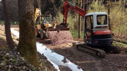 ... "objednaná realizační firma" přijela tentokrát již v 1/2 8. Vrhla se na štěrk a cesta byla v cuku letu rozvezená ...