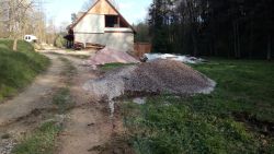 ... "objednaná realizační firma" na cestu jaksi neměla moc času a přestože jsme čekali, nedočkali jsme se. Štěrk jaksi není a bude asi zítra. Tak jsme si chvilku opakovaně telefonovali, vysvětlovali si svá stanoviska. Nicméně to nepomohlo, kačírek na zavezení výkopu a štěrk na cestu jaksi do večera nikdo nepřivezl ...