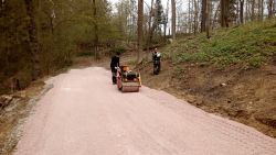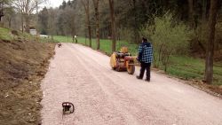 ... přijela "souprava" a vyvrhla štěrk na cestu. Obrátila se ještě pro kačírek ...