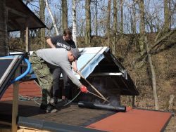 ... střecha nad dřevníkem jako nová...dřevo bude konečně v suchu ...
