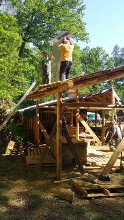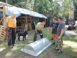 ... nahřívání "fólie" na pokrytí přístřešku ...