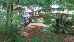 ... nejprve je potřeba odklidit dřevo z deponie hlíny ...