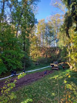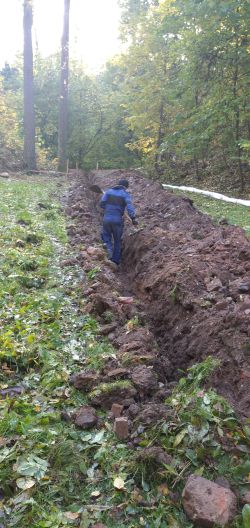 ... proto jsme rozhodli o melioračním výkopu přes parkoviště a příjezdovou cestu :-) ...