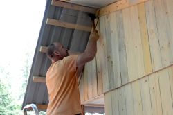 ... na skoro hotovou Chaotičku pokládáme plechovou střechu ...