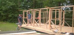 ... na podlahu postavíme rámy stěn, potlučeme je palubkama a ejhle - takhle vzniká Chaotička ...