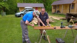 ... a zatímco jedni vyrábí okenice, druzí dodělávají střechu ...