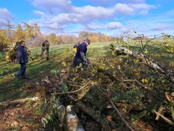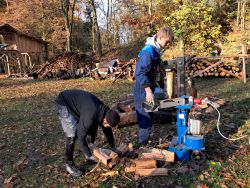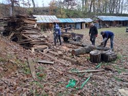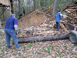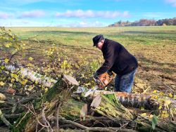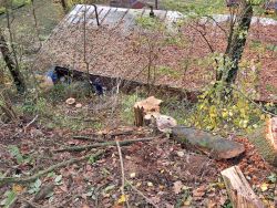 ... začali jsme brzo ráno, přijel objednaný dřevorubec a zahájil těžbu ...