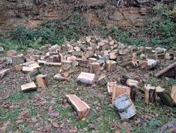 ... současně s kládičkami byly odklízny i odřezky z pily a rovnány pod střechu ...