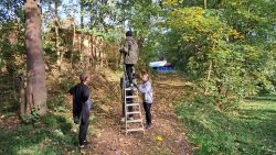 ... uklízela se střecha, listí a milióny žaludů zpoza boudy ...