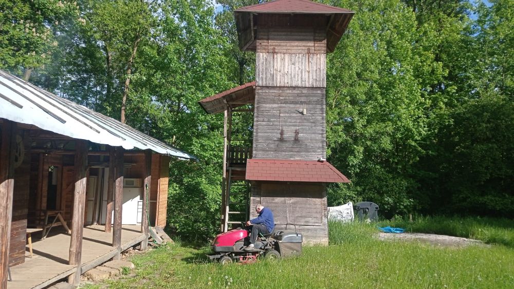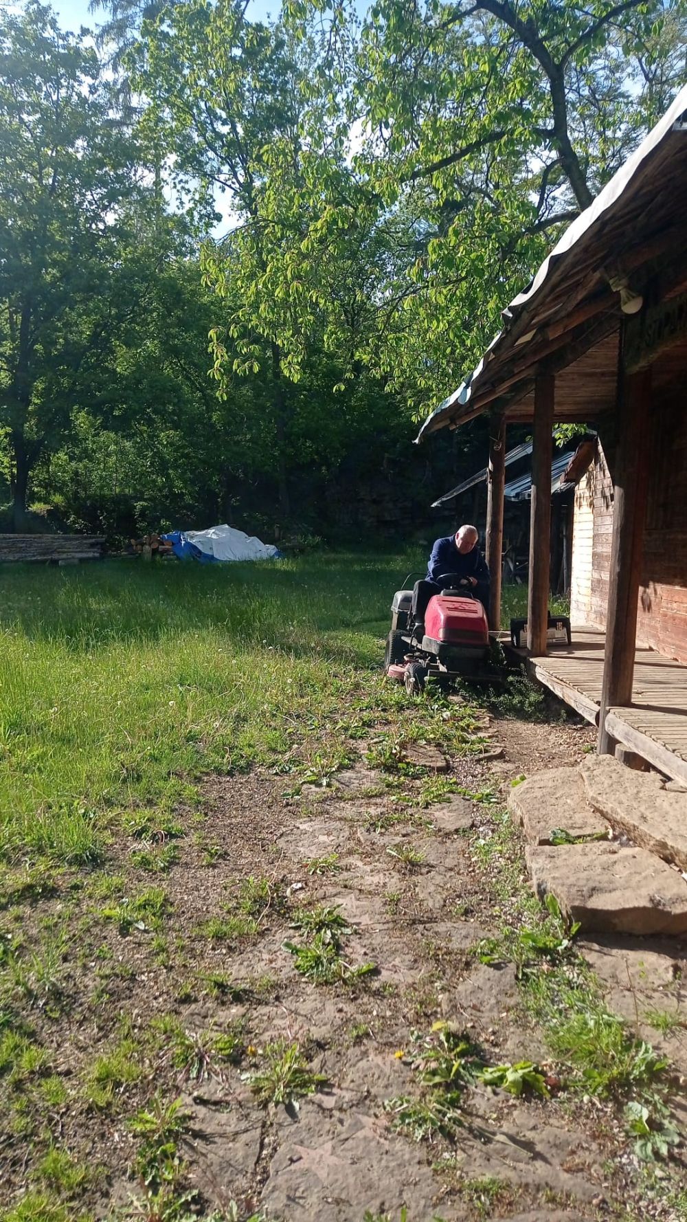 ... tráva je po kapotu traktůrku, musí se to nadvakrát ...