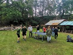 ... volná zábava se rozbíhá, hloučky diskutují ...