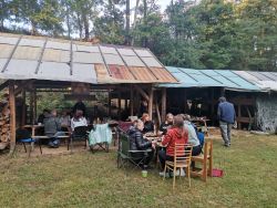 ... volná zábava se rozbíhá, hloučky diskutují ...